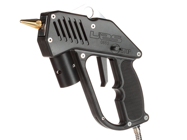 Het UES HP 07 hotmelt handpistool, is verkrijgbaar in drie uitvoeringen; standaard streep, zero cavity streep en swirl/spray.